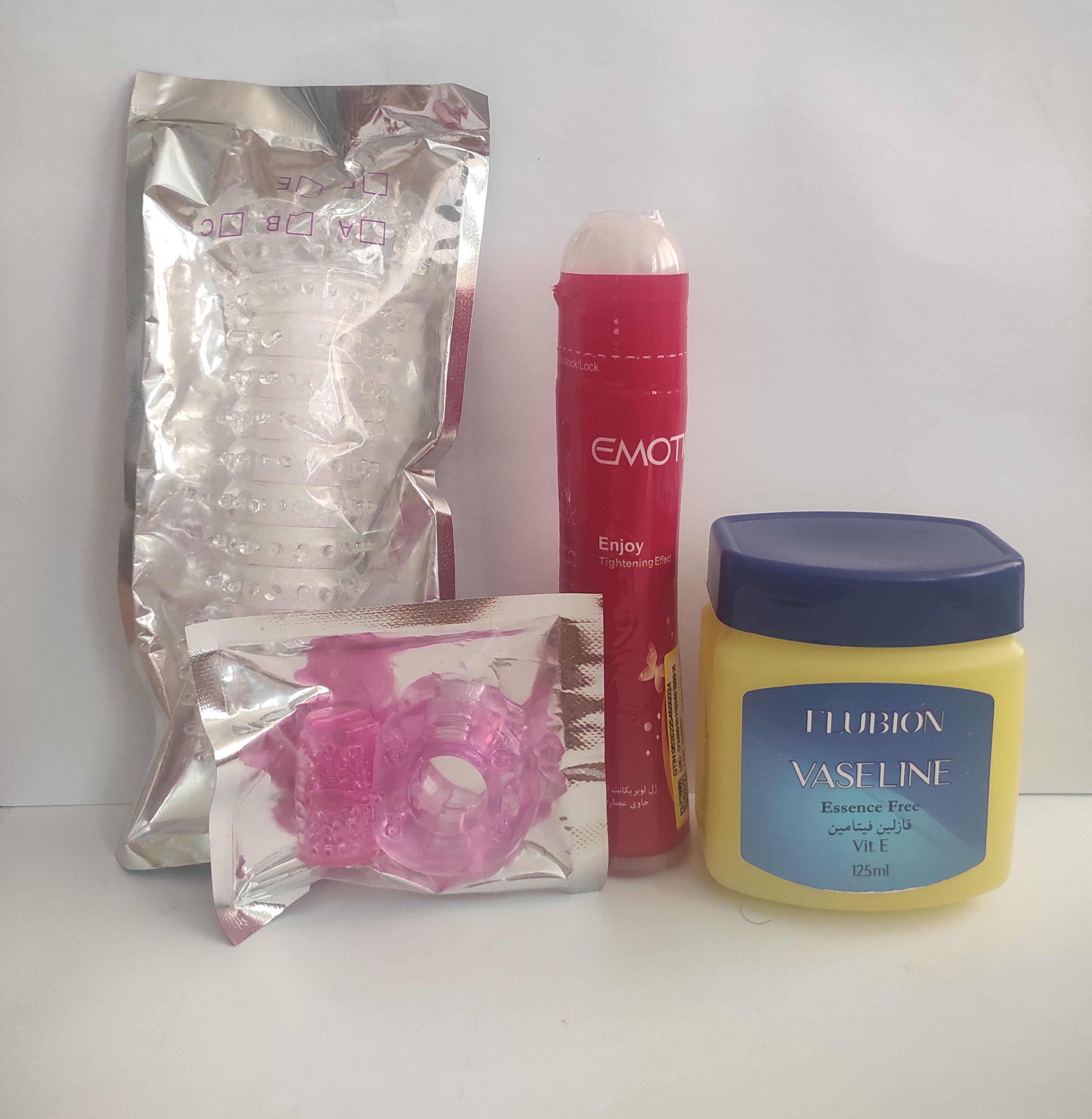 پک اقتصادی ( کاندوم سیلیکونی + حلقه ویبره + ژل تنگ کننده + وازلین )